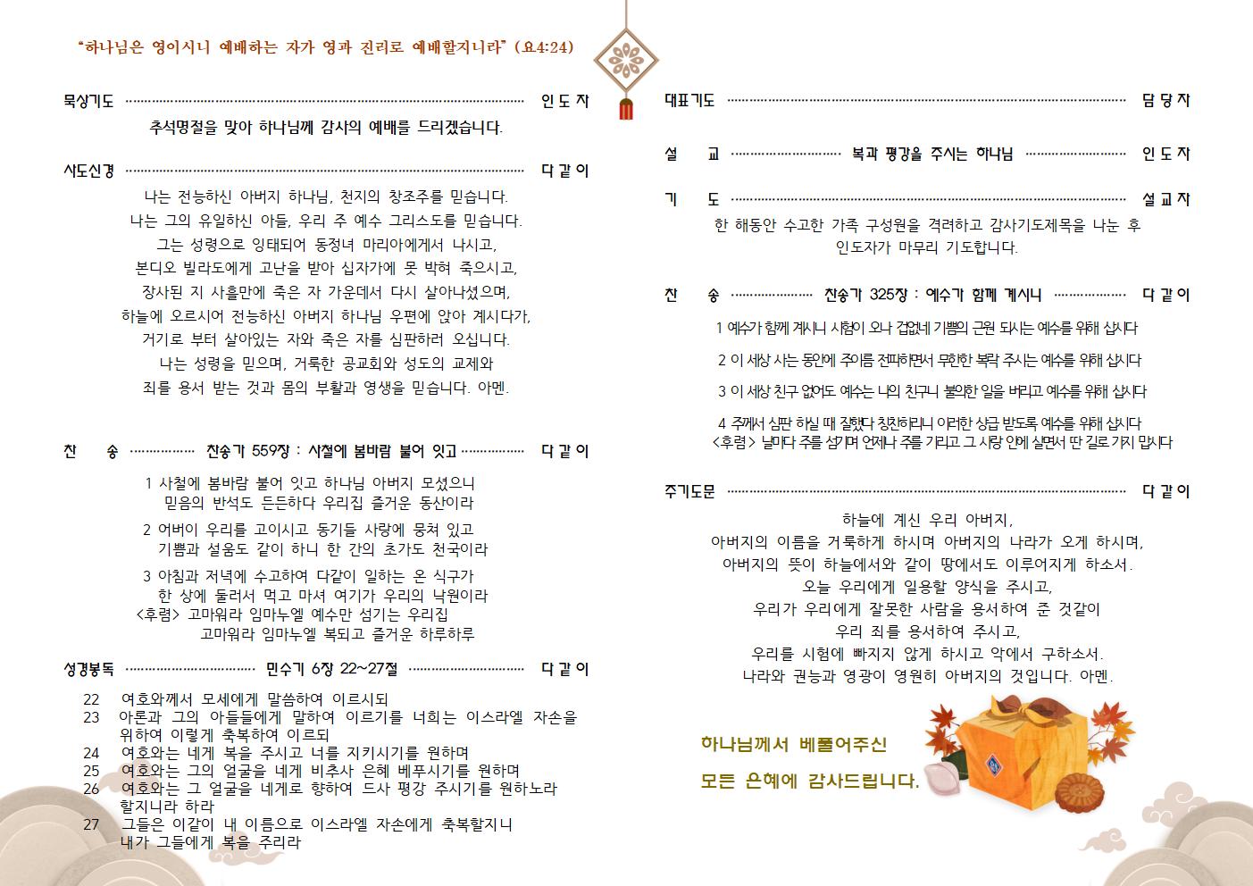 2024년 추석 가정예배 순서지